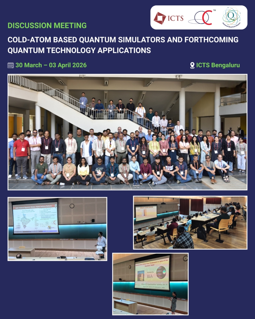 - The international discussion meeting “Cold-Atom Based Quantum Simulators and Forthcoming Quantum Technology Applications” was held at International Centre for Theoretical Sciences, Bengaluru, from 30 March to 03 April 2026. The program was co-supported by FQCI, National Quantum Mission.
