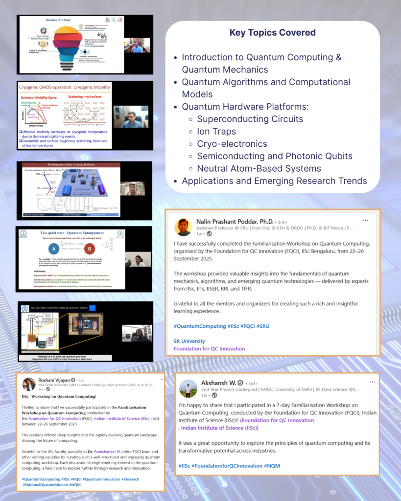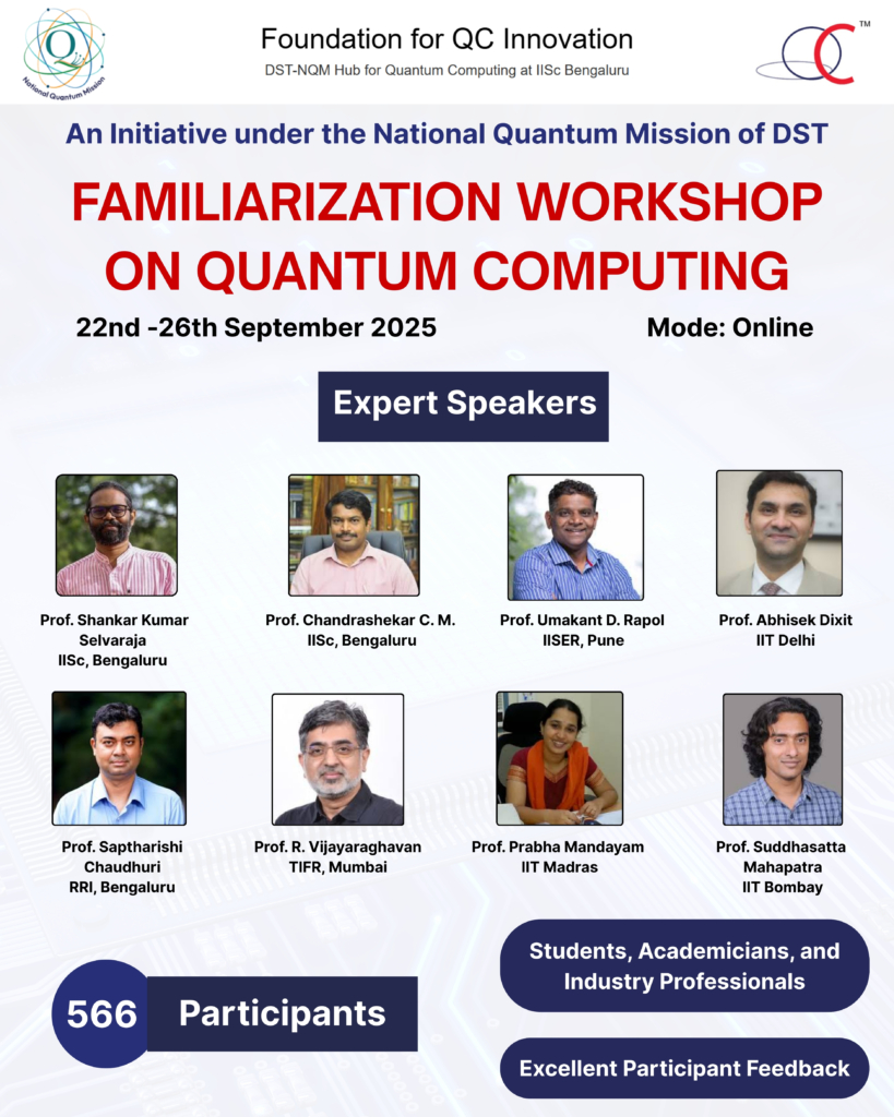 - Prof. Chandrashekar C. M. (IISc Bengaluru) – Fundamentals of Quantum Mechanics, Quantum Operations, Circuits, and Photonic Qubits.