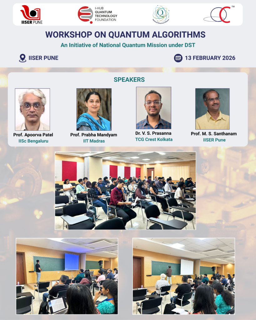 - I-HUB Quantum Technology Foundation at the IISER Pune (member institute of FQCI), organized an in-campus Workshop on Quantum Algorithms on 13 February 2026.
